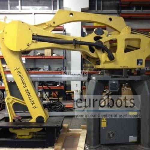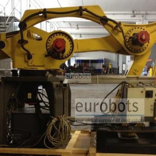 Year 2003. Heavy payload 4 axis palletizing robot. The Fanuc M-410iB features an R-J3iB controller integrated into the base to save space and ease installation. Integration is further simplified through the use of dedicated pneumatic and electrical connections on the wrist for end-of-arm tooling.
